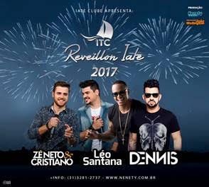 A Nenety Eventos e o Empresário João Wellington confirmaram a realização do Réveillon do Iate 2017. O Iate Tênis Clube (Av. Otacílio Negrão de Lima, 1350 – São Luiz) será palco para grandes nomes da música, como a dupla sertaneja, Zé Neto e Cristiano, o gigante do axé, Léo Santana, e o maior DJ de funk do Brasil, Dennis DJ. Uma mistura de ritmos que promete agitar a tradicional festa de passagem de ano da capital, que se destaca pela vista privilegiada aos fogos da Pampulha e a qualidade das atrações musicais.