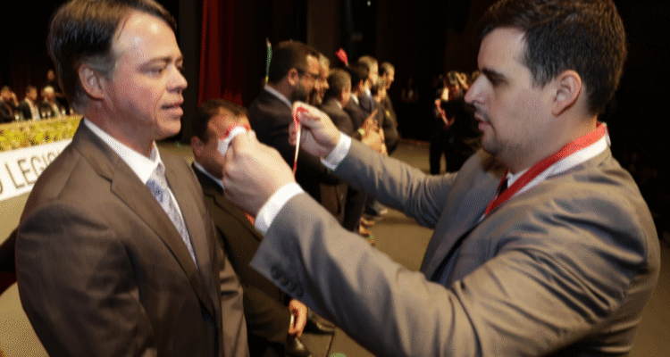 Deputado Bruno Engler entrega honraria a Tiago de Brito – Divulgação.